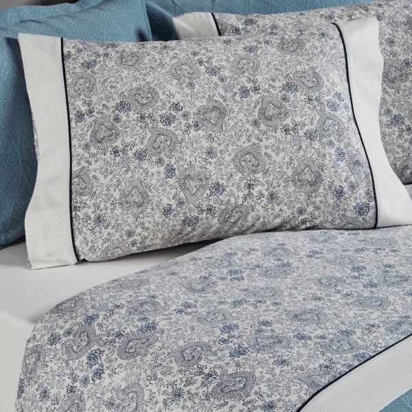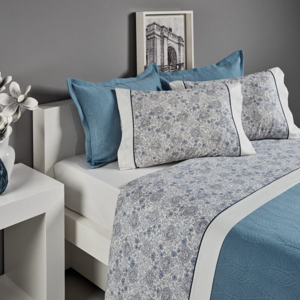 Jogo de Lençóis PETRA | Pérola/Azul | Microcoralina | S. José