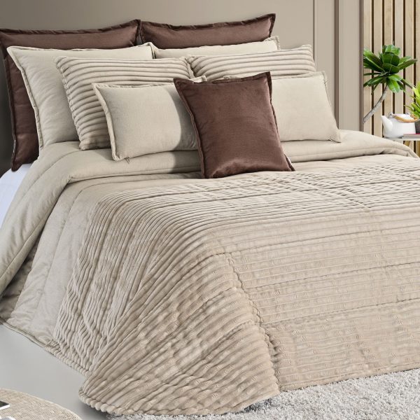 Edredon em veludo bege e pêlo canelado bege.