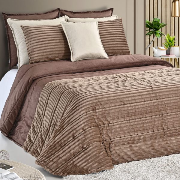 Edredon em veludo casatanho e pêlo canelado castanho.