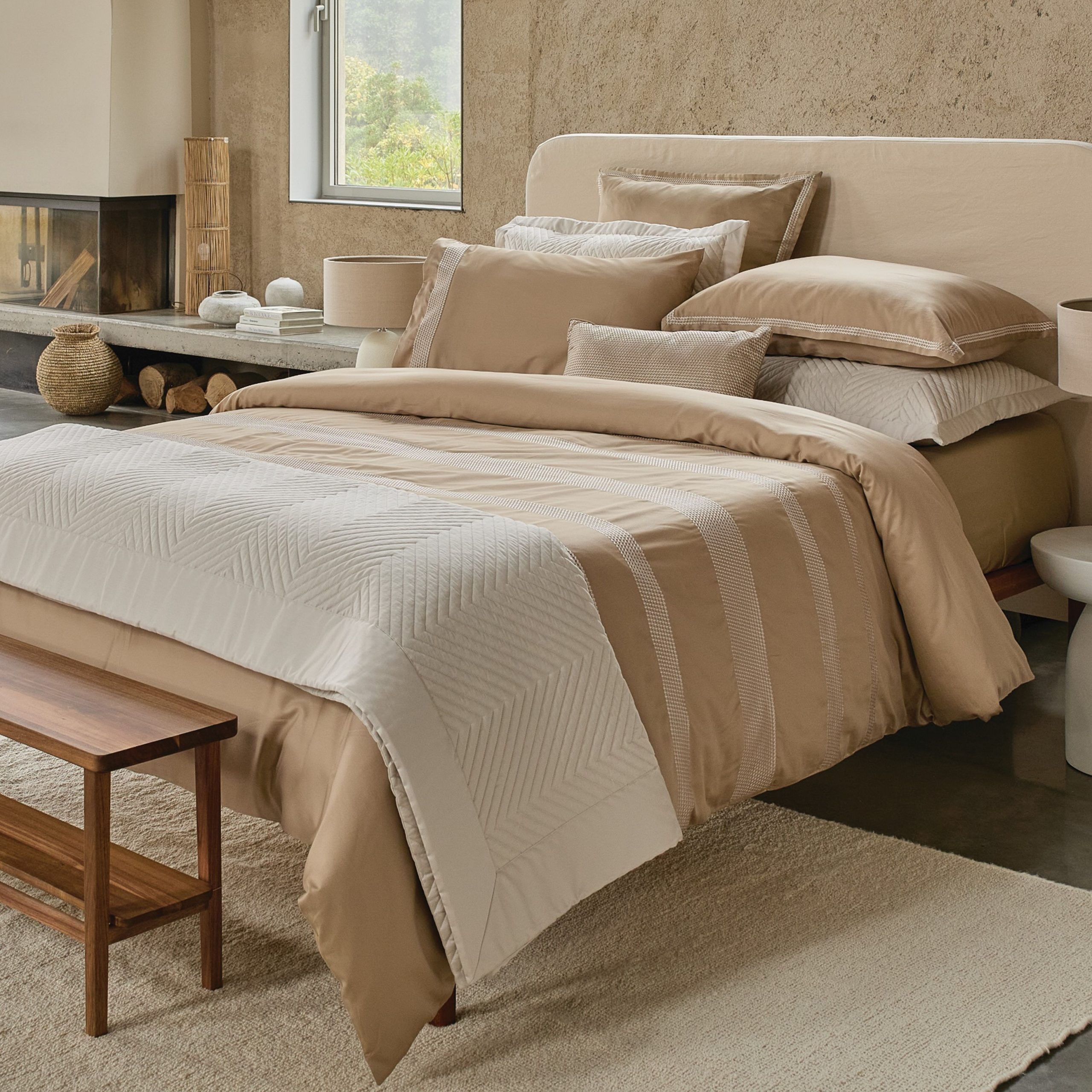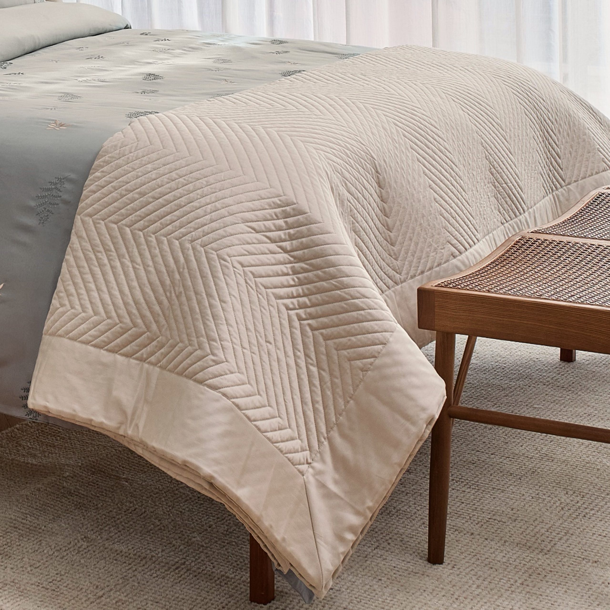 Colcha ELOISE | Bege Linho | Cetim Algodão 300 Fios | Bovi