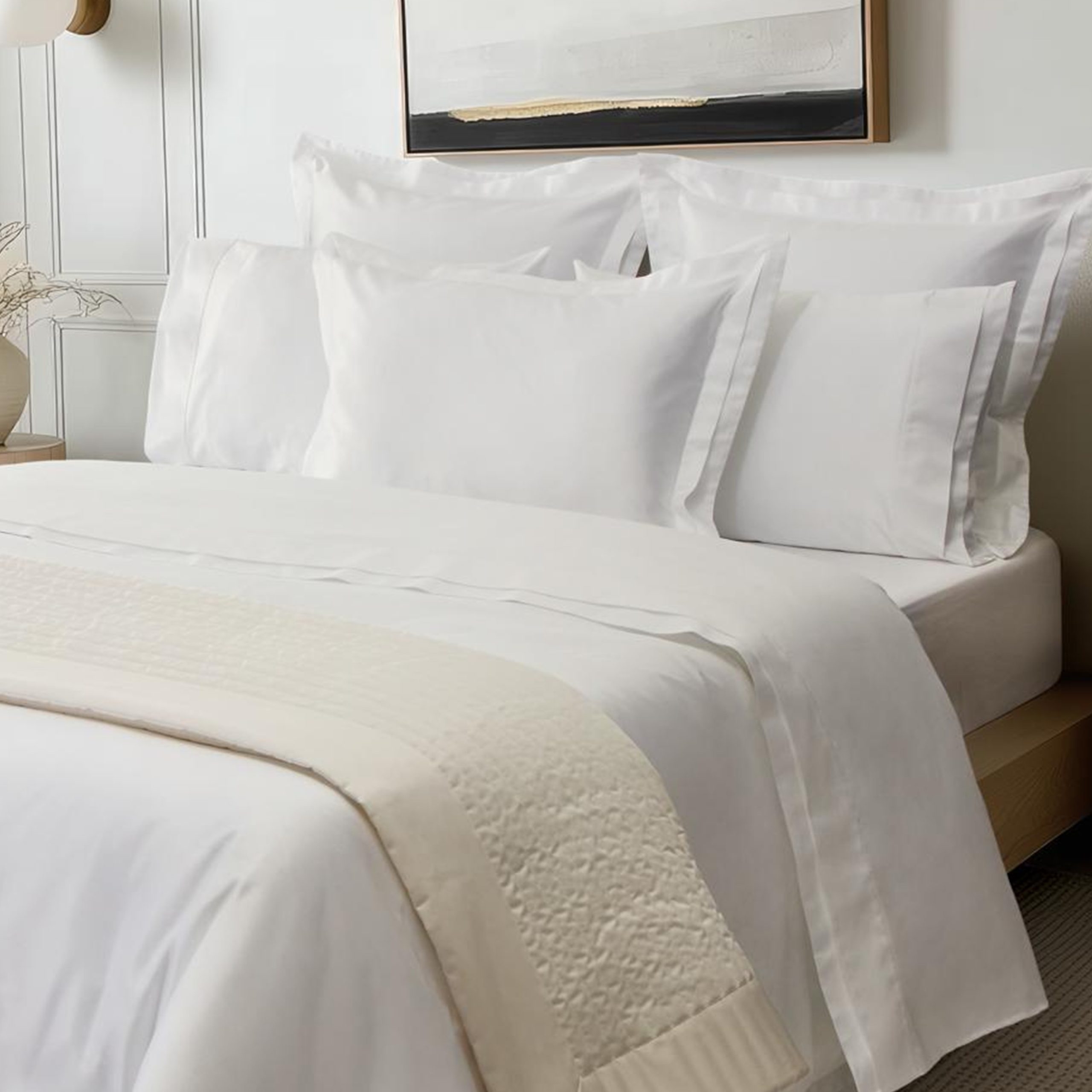 Confeccionado em 100% algodão Giza, com uma excecional trama de 1000 fios em cetim.