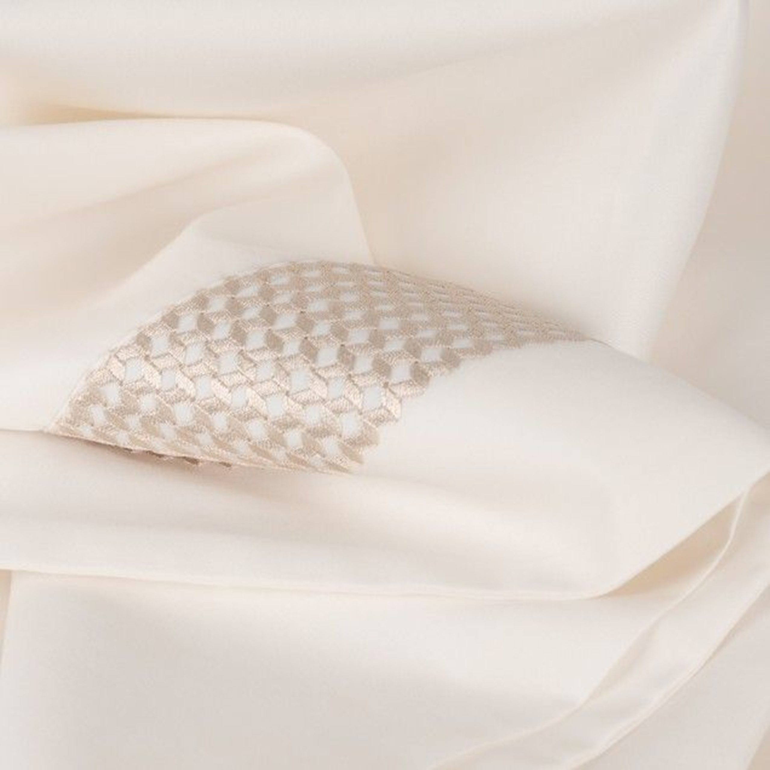 Jogo de lençóis marfim com bordado bege.