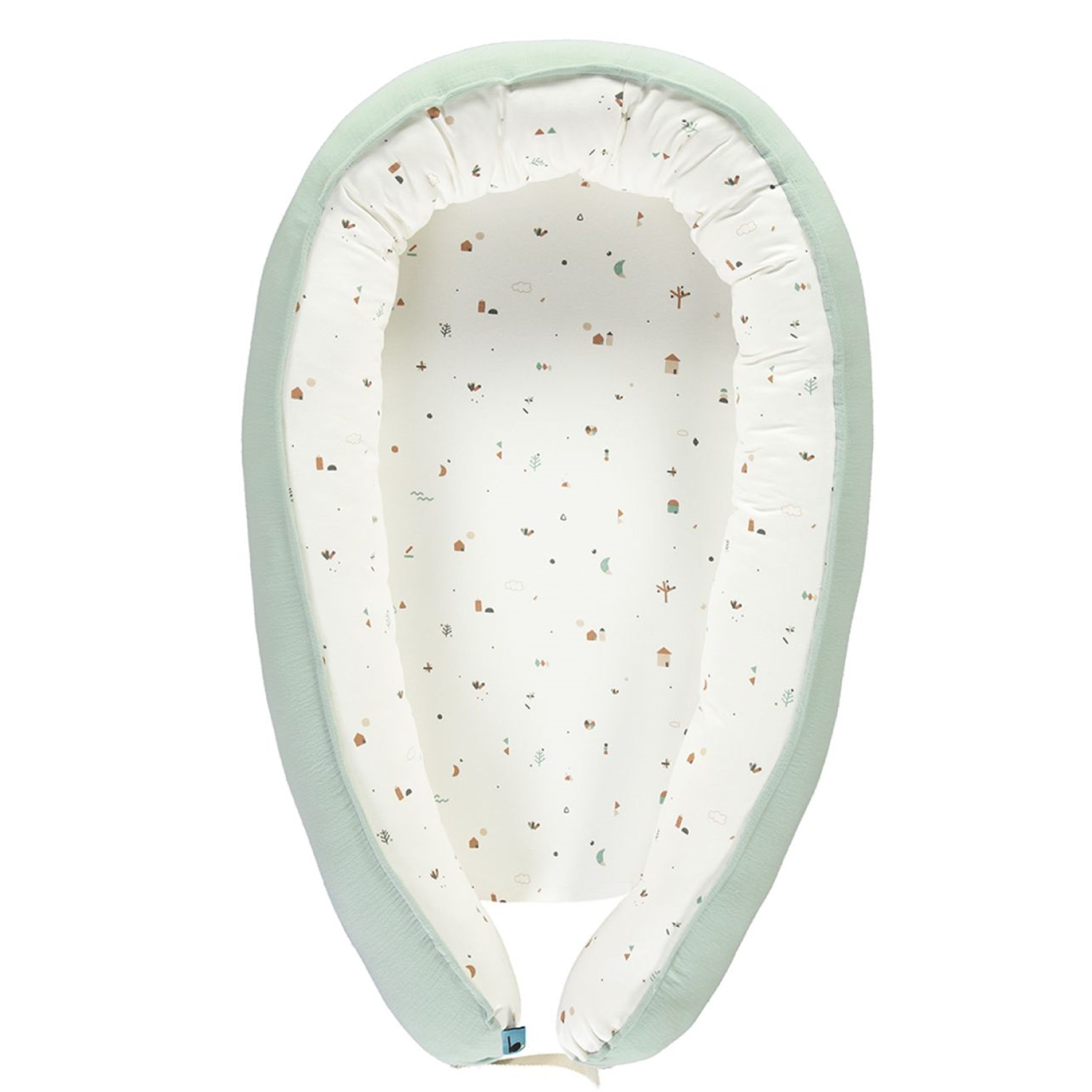 Tem fecho que permite separar o colchão da rolo/almofada envolvente e transforma-se em redutor para cama de grades.