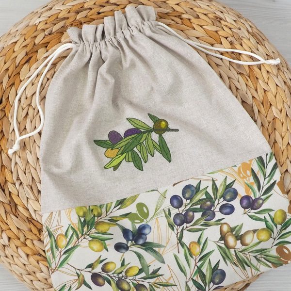 Pano de cozinha branco com bordado de comboio ao centro da barra.