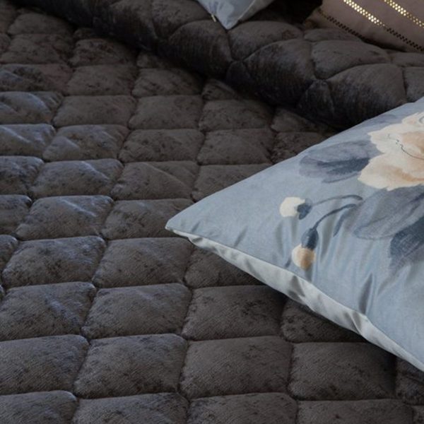 Edredon de chenile cinza escuro com acolchoado fino muito prático e elegante.