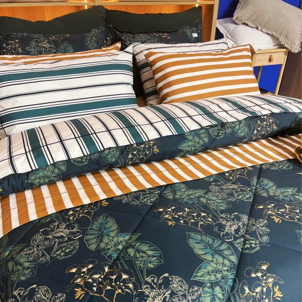 Inclui almofadas 50x70cm do mesmo tecido do edredon com enchimento.