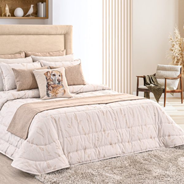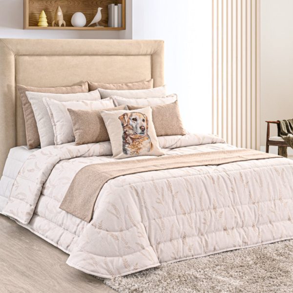 Edredon em jacquard de ramos em tons bege.