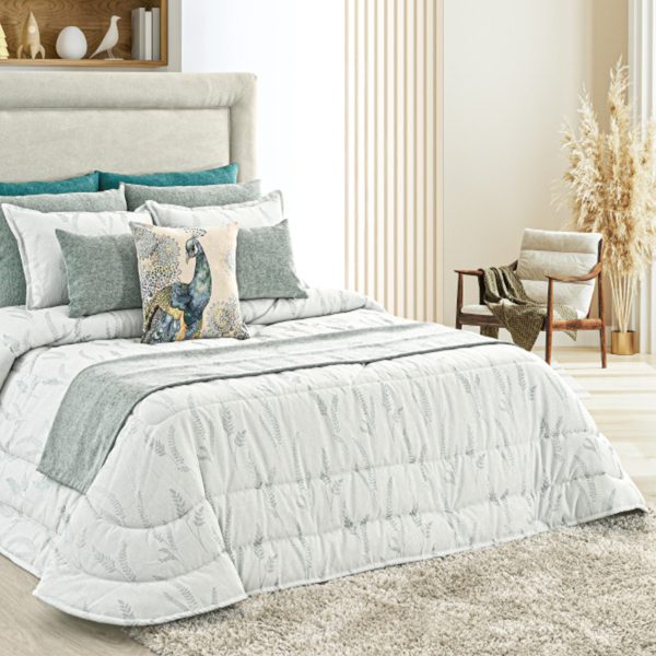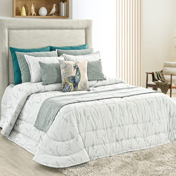 Edredon em jacquard de ramos em tons verde.