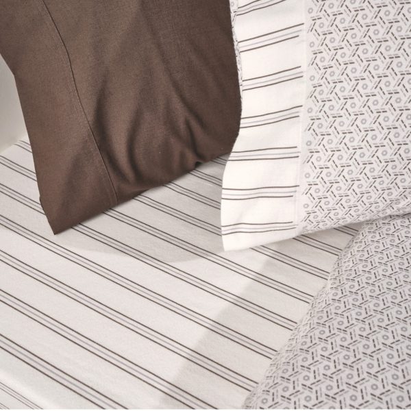 O jogo de lençóis em flanela TRANCOSO, apresenta um design geométrico.