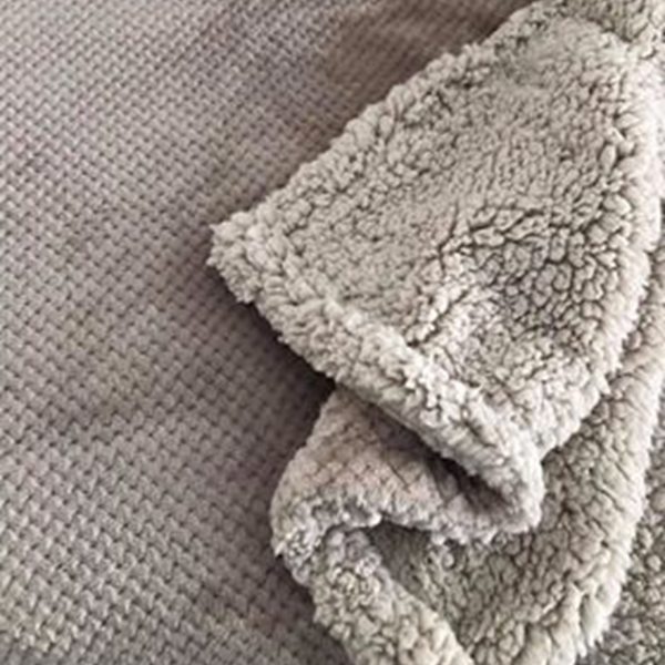 Manta de pêlo branco com outra face pêlo de borrego/sherpa branco.