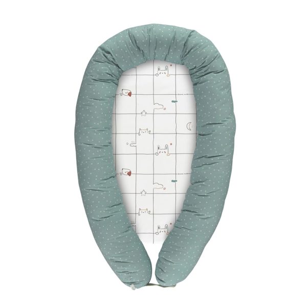 Tem fecho que permite separar o colchão da rolo/almofada envolvente e transforma-se em redutor para cama de grades.